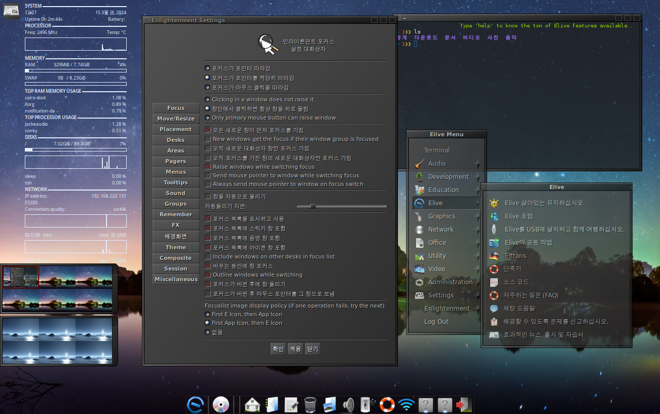 Enlightenment desktop 과 Debian 을 기반으로 하는 Elive Linux.. 3.8.26 베타 버전을 설치하고.. 스샷을 찍어봄..