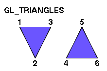 GL_TRIANGLES 는 한 삼각형을 그릴 때마다 3개의 정점이 필요합니다. 따라서 2개의 삼각형을 그리면 6개의 정점이 필요합니다.